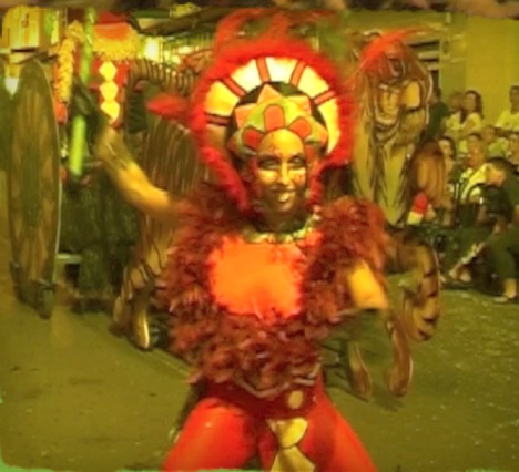 Los actores y bailarinas, realizan diferentes acciones teatrales y danzas de tono africano en torno a su líder que va en el carro de los tigres, manejando el fuego y los efectos visuales de pirotecnia dentro de las propias coreografías para aportar más espectacularidad al desfile o pasacalles.