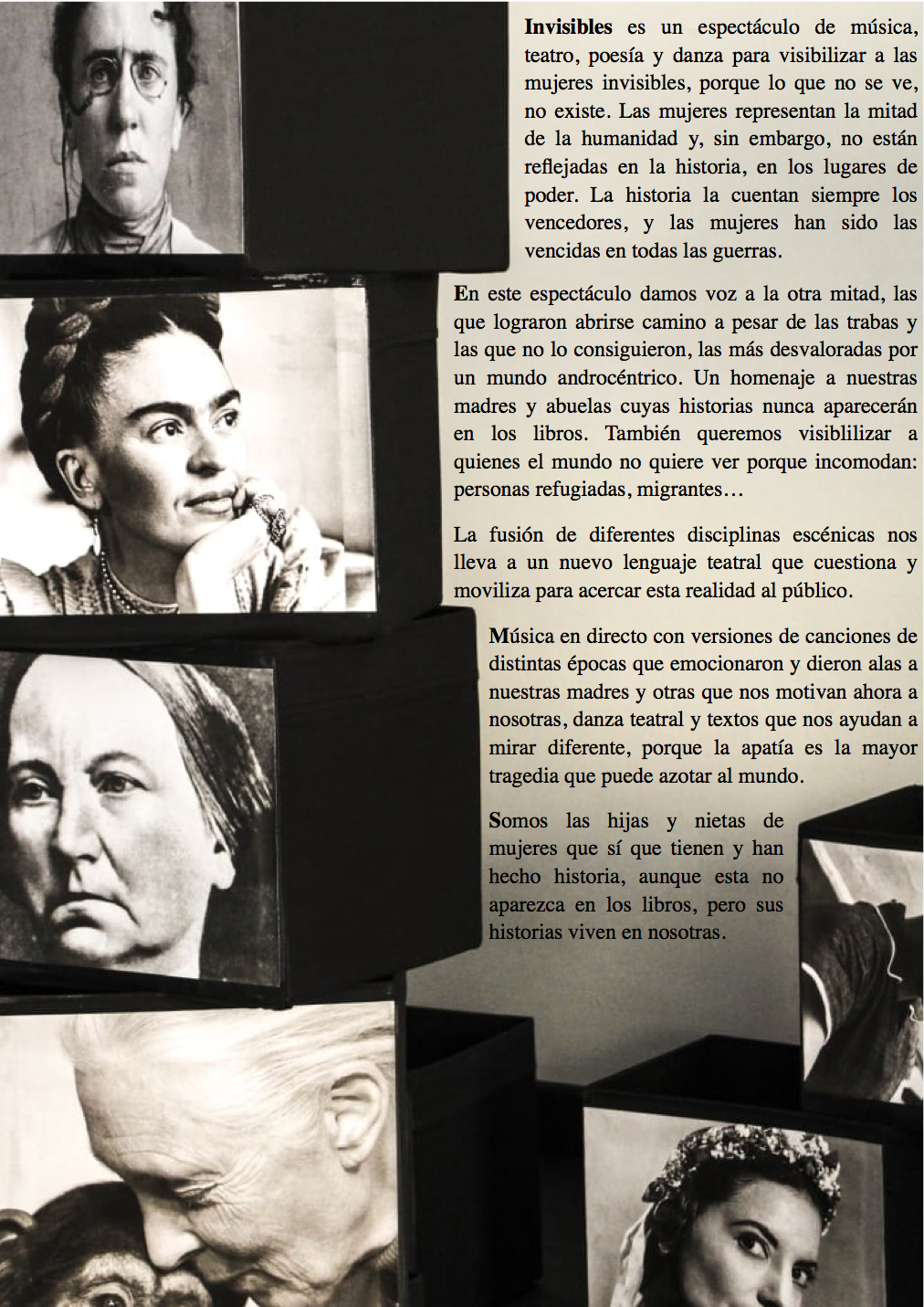 Declarem que l´espectacle INVISIBLES a rebut dins de les Ajudes de foment de les arts escèniques per als sectors teatral i circense, que atorga el Institut Valencià de Cultura la concessió d´una ajuda a la producció de 12.000 €
